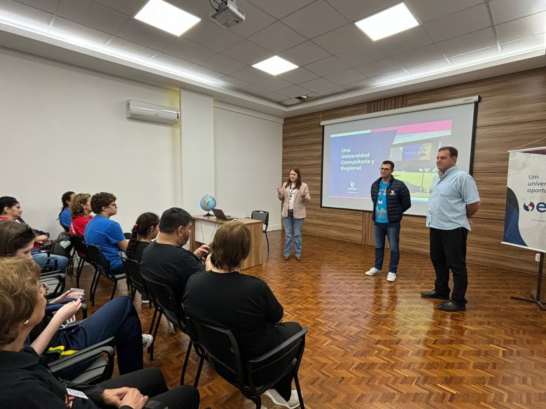 O professor Daniel fez uma curta apresentação, onde contou um pouco sobre a história da Unijuí. “É uma satisfação poder mostrar um pouco e fazê-los conhecer um pouco do que temos aqui, nossos cursos tanto de graduação quanto de pós-graduação, e mais que isso, a estrutura da nossa Universidade”, destaca o vice-reitor, em sua fala.