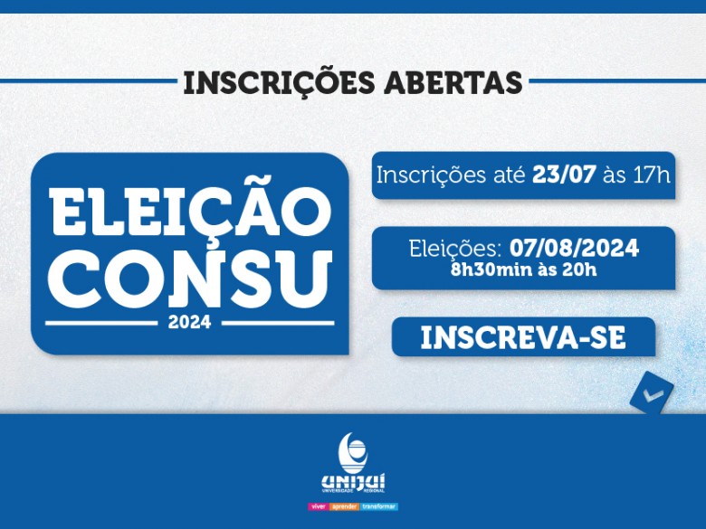 O Conselho Universitário - Consu, colegiado superior deliberativo, normativo, consultivo e de supervisão da Unijuí, está com processo eleitoral aberto para a escolha dos representantes do quadro de professores efetivos do Plano de Carreira do Magistério Superior e do quadro técnico-administrativo e de apoio, conforme dispõe seu Estatuto e seu Regimento Geral.