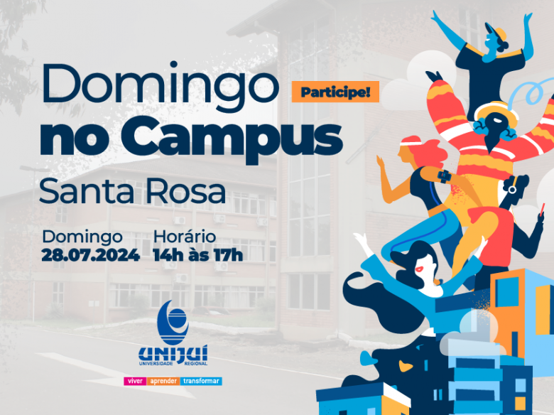 A Unijuí vai promover, neste domingo, 28 de julho, o evento Domingo no Campus, em Santa Rosa. A atividade vai acontecer no campus da Universidade, a partir das 14h, e será um evento de integração com a comunidade de Santa Rosa e região, tendo como objetivo celebrar os 34 anos do campus no município e os 15 anos do Laboratório de Atividade Física e Promoção da Saúde