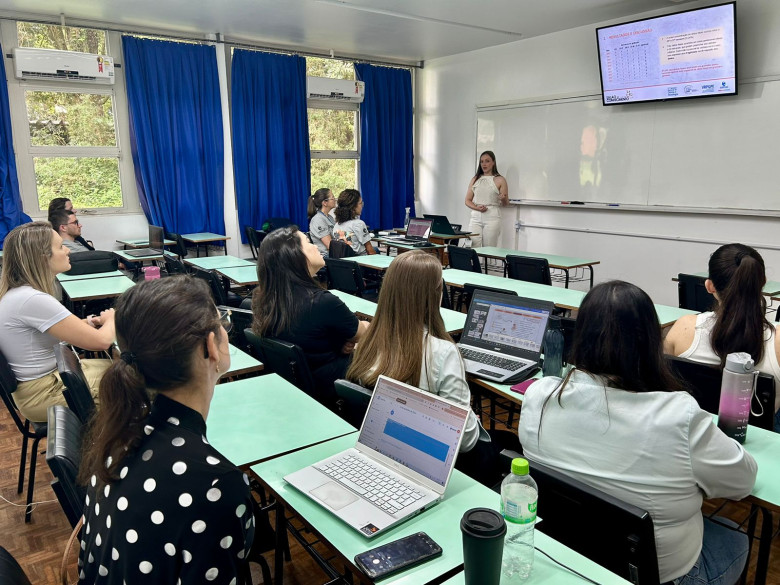 O segundo dia do Salão do Conhecimento da Unijuí, realizado nesta terça-feira, 24 de setembro, foi marcado pela apresentação de trabalhos. Nos turnos da manhã e tarde, os bolsistas de Iniciação Científica e Tecnológica, socializam os resultados de mais de 110 trabalhos em diferentes áreas do conhecimento. A apresentação ocorreu no formato híbrido, sendo presencial no campus Ijuí e on-line para os acadêmicos dos demais campi.
