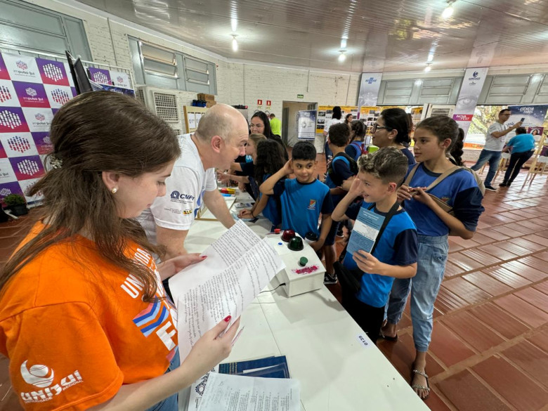 Durante a tarde desta quarta-feira, 16 de outubro, a Unijuí promoveu no espaço do InovaFest, na ExpoFest Ijuí, mais uma edição do projeto Ciência para Todos, que tem como objetivo a popularização da ciência entre a comunidade, especialmente entre professores e estudantes da Educação Básica ao Ensino Superior. O evento integra a 21ª Semana Nacional de Ciência e Tecnologia e acontece em mais dois campi neste mês: no dia 22 em Santa Rosa e no dia 28 de outubro em Panambi.