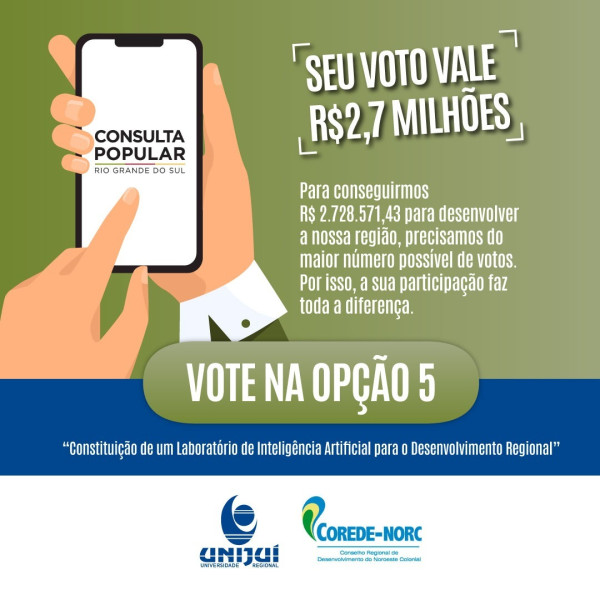 Teve início nesta segunda-feira, dia 2 de dezembro, o período para votação na Consulta Popular 2024. Essa é a última etapa do processo participativo, pelo qual são definidas as prioridades regionais incorporadas ao orçamento do Estado. Para participar, os cidadãos podem votar pelo portal, pelo WhatsApp (51) 3210-3260 ou por meio das urnas itinerantes. O prazo encerra-se às 23h59 de sexta-feira, dia 6 de dezembro.