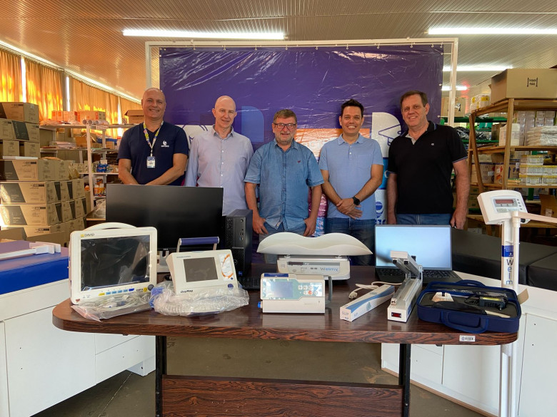 Entre os itens entregues estão um ventilador de transporte e emergência, um Therapy Acp, 10 Autoclave 54 litros, 18 mesas ginecológica Luxal /Maca, oito seladoras Protect Seal Plus, 25 apoios para braço/suporte, 16 balanças W300 C/Reg Cap 300kg Welmy, 18 balanças 109e Baby, nove bombas de Infusão, três monitores multiparametro, 30 réguas Pediatric Caumaq, 32 suportes de soro, quatro macas clínicas pediátricas, 10 monitores de computador, 20 microcomputadores e 15 notebooks.