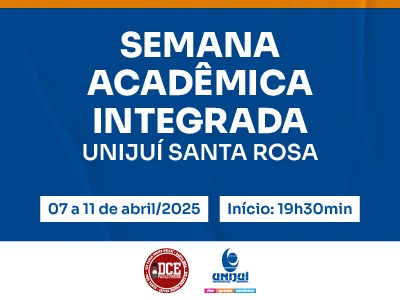 A Semana Acadêmica Integrada da Unijuí campus Santa Rosa acontecerá entre os dias 7 e 11 de abril, oferecendo uma programação diversificada e acessível aos acadêmicos e à comunidade em geral. O evento será gratuito, viabilizado pelo Fundo Estudantil (FAAE), uma novidade deste ano que fortalece a qualidade e a inclusão nas atividades acadêmicas.
