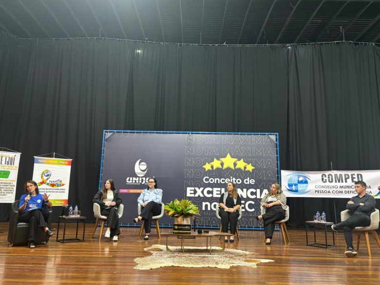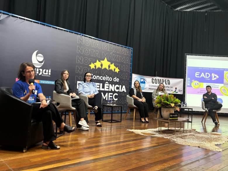 Participaram da discussão a fonoaudióloga, mestre e professora do curso de Fonoaudiologia, Vanessa Deuschle Araújo; a psicóloga e analista de comportamento, Patrícia Soares; a neuropsicopedagoga clínica, Julia Amanda Herter; o médico neurologista e professor do curso de Medicina da Unijuí, Gilmar da Silva; e a acadêmica do curso de Arquitetura e Urbanismo, Heloisa Renata Zientarski, que compartilhou sua experiência como pessoa com TEA.