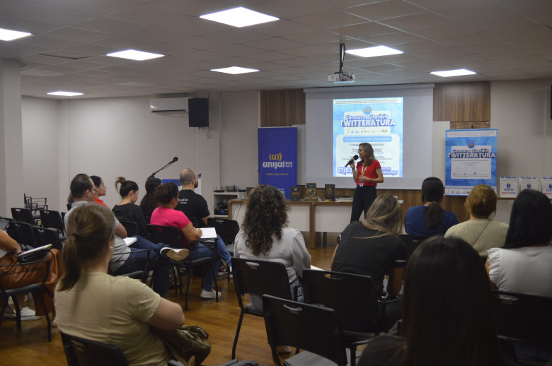 Na última quinta-feira, 27 de março, aconteceu no Centro de Eventos da Unijuí a formação para professores, coordenadores e diretores de escolas inscritas no projeto “O que é possível dizer em 280 caracteres? A arte da escrita literária em rede através da Twitteratura", promovido pela Rádio Unijuí FM e curso de Letras da Unijuí, por meio de financiamento do Ministério da Cultura, Secretaria da Cultura do Estado do Rio Grande do Sul e Lei Paulo Gustavo.