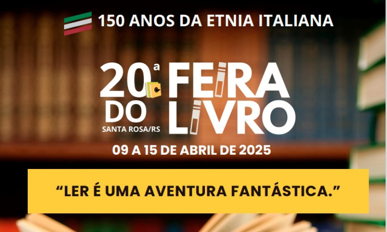 A 20ª edição da Feira do Livro inicia nesta quarta-feira, 9, em Santa Rosa, com uma programação diversificada voltada para todas as idades. O evento se estende até o dia 15 de abril, em frente à Biblioteca Pública Municipal Olavo Bilac, das 7h45 às 21h. A Unijuí marcará presença com atividades educativas e culturais para a comunidade.