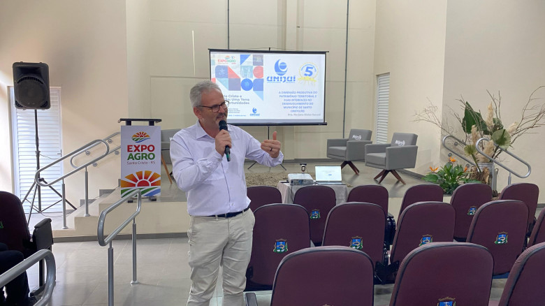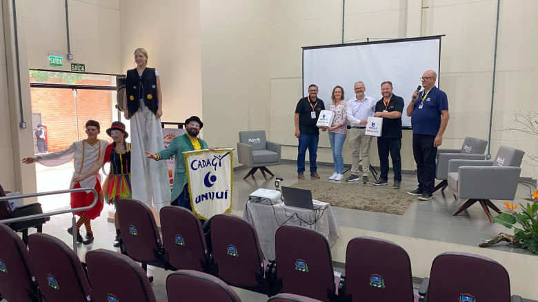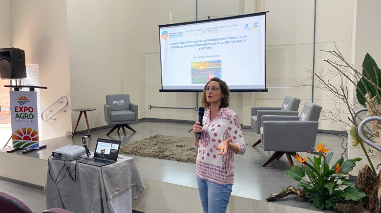 Entre os dias 10 e 13 de abril, a Unijuí esteve presente na 10ª ExpoAgro em Santo Cristo. A companhia Cadagy alegrou os visitantes e acompanhou ações de divulgação dos cursos da Universidade no primeiro dia de feira. Os destaques foram os painéis “Santo Cristo e Região: Uma Terra de Oportunidades” e “Raízes da História do Cooperativismo, Presente e Futuro”, promovidos pela Unijuí, em parceria com o curso de Administração e o Programa de Pós-Graduação Desenvolvimento Regional.