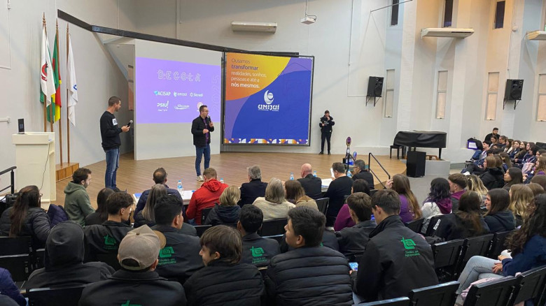 O presidente da Acisap, Cássio Feltes, destacou a importância e da participação das escolas. “Todo mundo que está aqui hoje já está ganhando, porque estão se preparando para o futuro de vocês”, diz. A professora Taciana Paula Enderle, coordenadora da Unijuí campus Santa Rosa, reforça o importante papel da educação nesse processo. “É através dessa semente do Decola que a gente quer que vocês acreditem nos seus sonhos, pois é somente a partir da educação que é possível transformar a vida de vocês”.