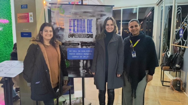 Na última quarta-feira (25), o hall da Biblioteca Mario Osório Marques foi palco da Feira de Empreendedorismo, promovida pela disciplina Projeto Integrador: Empreendedorismo e Inovação. A atividade reuniu estudantes dos cursos de Jornalismo, Publicidade e Propaganda, Ciências Contábeis e Administração, que apresentaram os projetos desenvolvidos ao longo do semestre. A disciplina foi conduzida pelas professoras Fernanda Pasqualini, Márcia de Almeida e Thaís Teixeira.