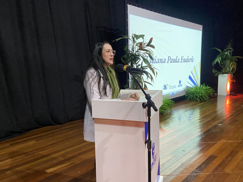 A professora Taciana Paula Enderle, hoje coordenadora do Campus Santa Rosa, compartilhou sua trajetória iniciada como estudante de Engenharia Elétrica, aos 17 anos. A graduação também foi a porta de entrada na Universidade para o professor Maiquel Ângelo Dezordi Wermuth, coordenador do Programa de Pós-Graduação em Direito da Unijuí, que também explorou aspectos de um valor importante: a ética.