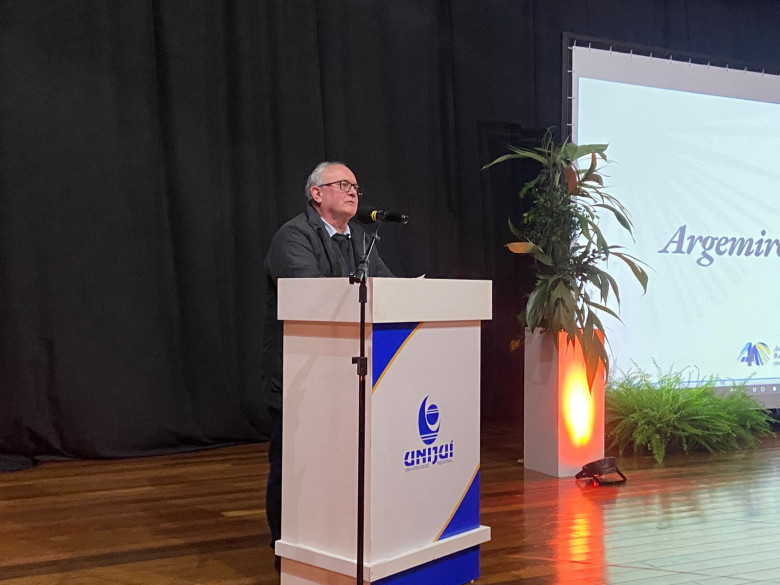 O professor Argemiro Luís Brum, coordenador do Programa de Pós-Graduação em Desenvolvimento Regional (PPGDR), abriu os relatos com uma memória especial: nasceu no mesmo dia e quase na mesma hora em que foi criada a Faculdade de Filosofia, Ciências e Letras de Ijuí (FAFI), em 1956, onde seu pai, Argemiro Jacob Brum, teve papel fundamental. Argemiro Luís também iniciou sua trajetória profissional na Unijuí, como office boy, e escolheu permanecer na instituição mesmo diante da possibilidade de estudar em Porto Alegre. “Sabia que aqui teria mais condições de avançar na vida e no mundo. E assim eu fiz”, relatou.