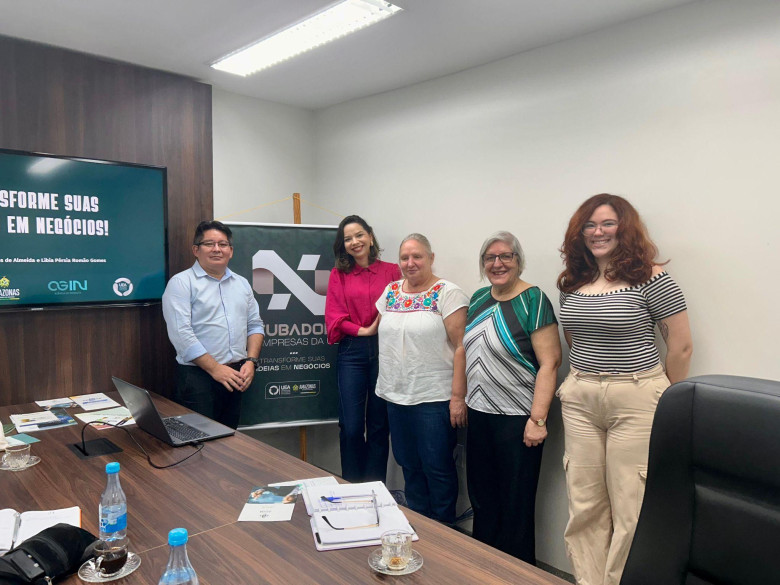 Na manhã do dia 21, as professoras Leonir, Maria Cristina e Francesca, acompanhadas da doutoranda Natália, realizaram uma visita técnica à Incubadora de Empresas da Universidade do Estado do Amazonas (INUEA), onde foram recepcionadas pelo coordenador da incubadora, doutor Neuler Almeida. O objetivo foi conhecer o sistema de inovação da instituição e explorar possibilidades de parcerias institucionais.