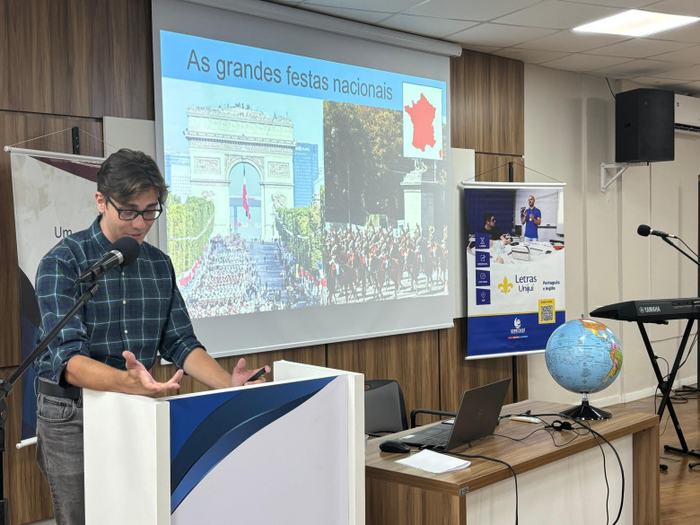 A Unijuí promoveu, na noite desta quinta-feira, 27 de novembro, o evento “Som, Saberes e Sabores do Mundo”, em alusão ao Dia do Estudante Internacional. A atividade reuniu estudantes do curso de Letras, alunos estrangeiros da Universidade e professores, que participaram de um momento de integração marcado por apresentações culturais e gastronômicas.