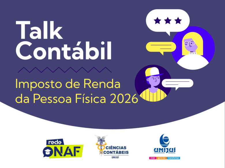 O curso de Ciências Contábeis da Unijuí promove neste sábado, dia 11, o Talk Contábil, evento de bate-papo online em parceria com o NAF - Núcleo de Apoio Contábil e Fiscal, para tirar dúvidas sobre o Imposto de Renda Pessoa Física 2026.