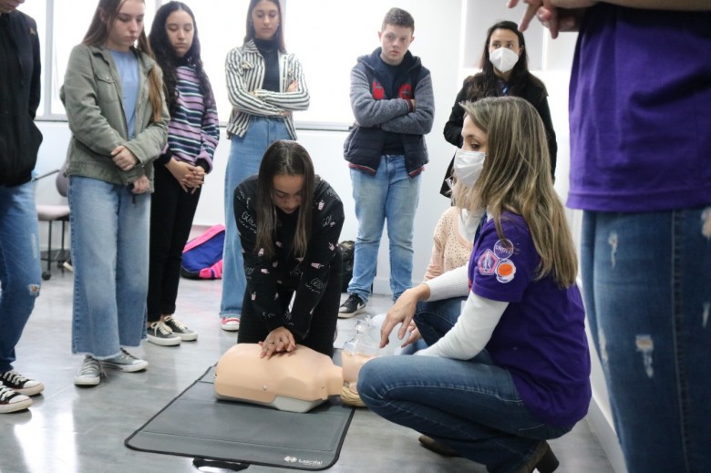 “Nós temos a obrigação de colocar uma sementinha nestes jovens, da necessidade de continuar os estudos após a Educação Básica. Esses alunos vêm de um período bastante duro de pandemia. Hoje, quem está no 3º Ano do Ensino Médio, teve os dois primeiros anos de aulas online e muitos nem isso, em função da falta de estrutura. Poder proporcionar esse momento a eles, de conhecer o nosso campus, as possíveis profissões que podem seguir, é um orgulho”, afirmou a vice-reitora de Graduação, professora Fabiana Fachinetto.