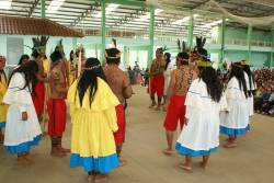 O grupo de danças que se apresentou na programação do Museu Antropológico Diretor Pestana é proveniente da Terra Indígena Inhacorá, município de São Valério do Sul. Através da dança expressam valores e costumes tradicionais que os identificam como etnia diferenciada. As pinturas que apresentam nos rostos demonstram a organização tradicional em dois clãs, ou metades. Os que têm a marca comprida, como riscos, pertencem à metade Kamé e os que têm a marca redonda, em círculos, são Kairú.