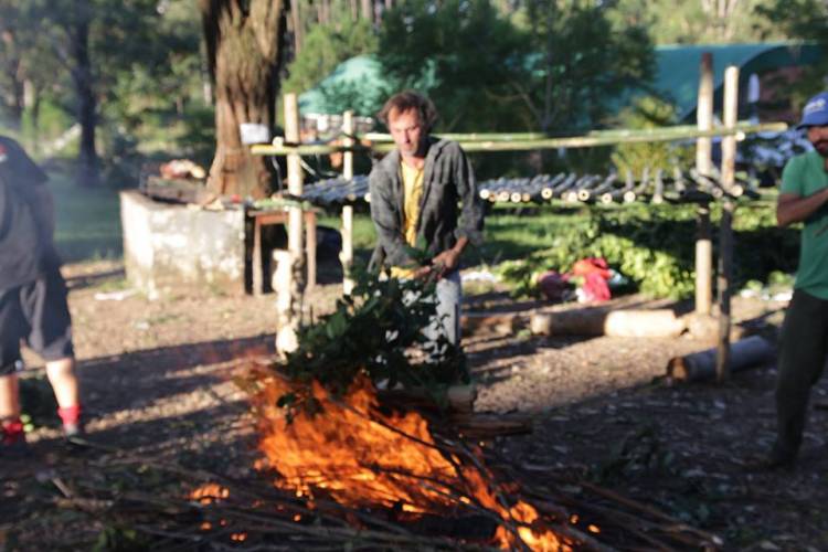 Legenda: Jefferson Pinheiro, da equipe do Coletivo Catarse, realizando o “sapeco” da erva-mate, em atividade de carijada em Soledade, realizado em março deste ano