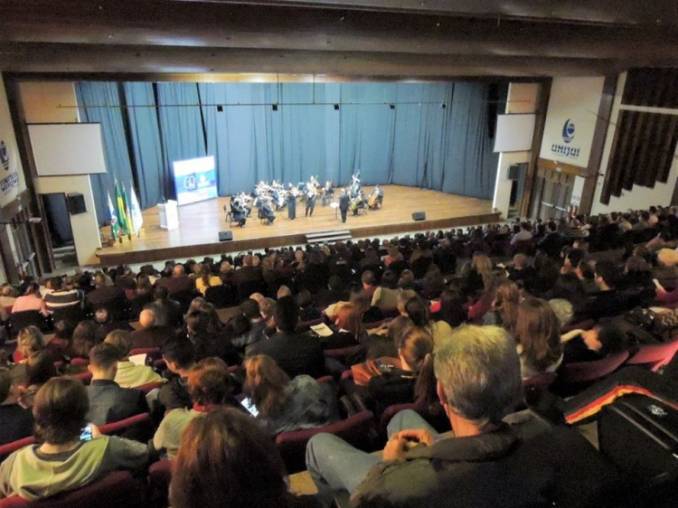 Antes da apresentação da Orquestra, o Coral Unijuí realizou uma abertura, destacando três músicas que serão apresentadas em Recital para comemorar os 25 aos do grupo, no dia 15 de julho.