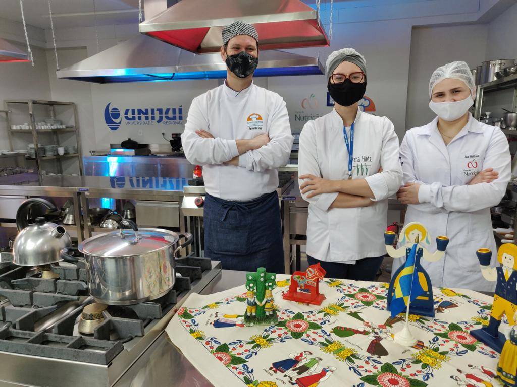 Os cursos de Gastronomia e Nutrição disponibilizaram os laboratórios e professores para o preparo de receitas típicas das etnias ao vivo. A chef de cozinha Tiana Maxine Kronbauer Hintz, a professora Eilamaria Libardoni Vieira e a coordenadora Adriane Huth, orientaram e auxiliaram os estudantes no preparo de receitas típicas.