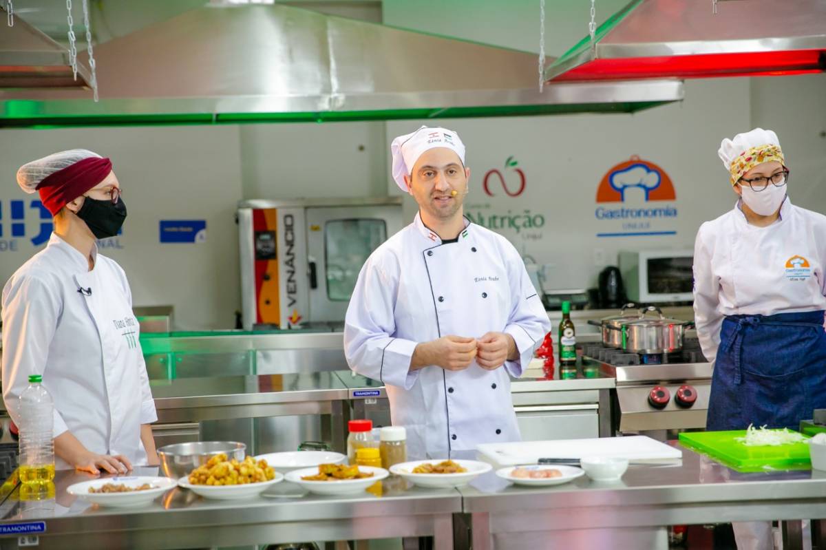 Os cursos de Gastronomia e Nutrição disponibilizaram os laboratórios e professores para o preparo de receitas típicas das etnias ao vivo. A chef de cozinha Tiana Maxine Kronbauer Hintz, a professora Eilamaria Libardoni Vieira e a coordenadora Adriane Huth, orientaram e auxiliaram os estudantes no preparo de receitas típicas.