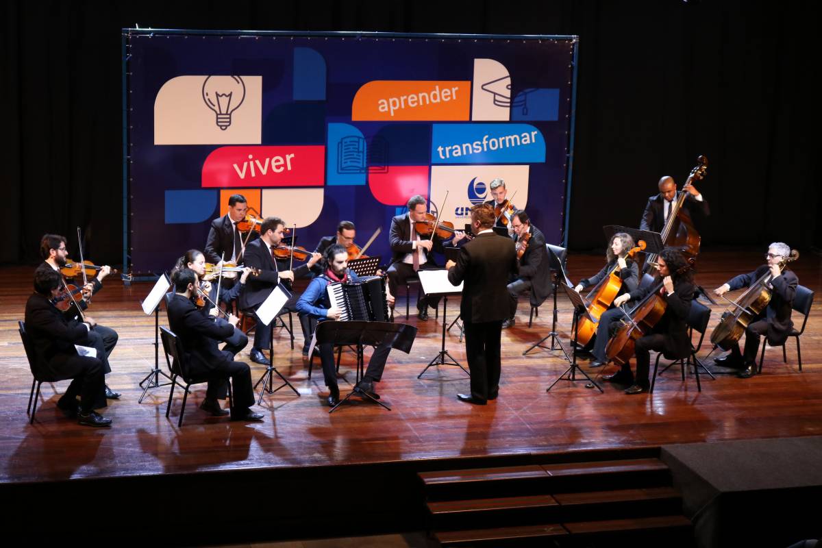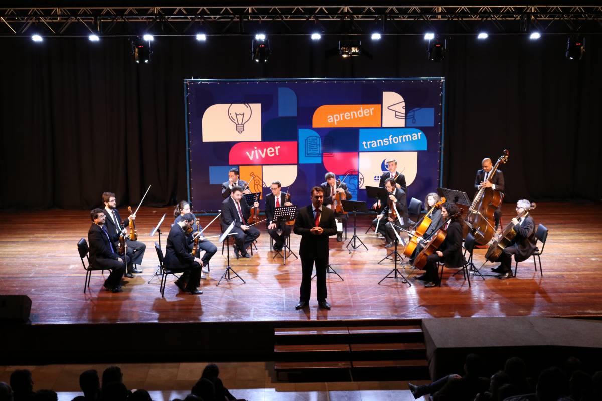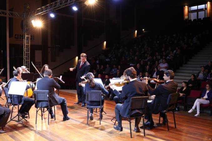 A comunidade de Ijuí e região lotou o Salão de Atos Argemiro Jacob Brum no último domingo, 26, para assistir ao concerto da Orquestra de Câmara da Unisc, grupo formado por 14 instrumentistas, um maestro e diretor artístico.