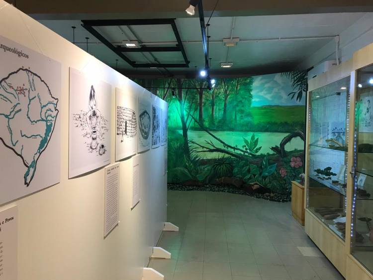 - A primeira mostrando as origens e chegada dos primeiros habitantes destas terras por meio de ilustrações, vídeos e vestígios arqueológicos e os atuais povos indígenas no RS, através de fotografias e cultura material. As ilustrações desta etapa representam cenas do cotidiano dos primeiros povos caçadores e coletores, dos povos horticultores e dos povos agricultores e foram feitas pelo artista santo-angelense Clayton Cardoso, que pintou também um painel de 6m de comprimento por 2,75m de altura representando o ambiente natural da região noroeste.