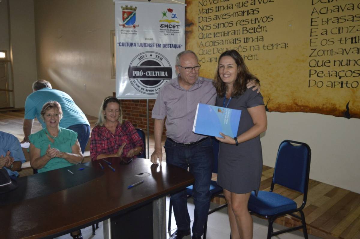 Aconteceu na tarde desta sexta-feira, 29, a assinatura dos contratos das entidades contempladas no edital Cultura Ijuiense em Destaque, em que a UNIJUÍ FM foi classificada em primeiro lugar na categoria de incentivo à Literatura e o Coral UNIJUÍ selecionado na área de música. A Secretaria Municipal de Cultura, Esporte e Turismo irá repassar R$ 10 mil para cada um dos 15 projetos aprovados nas áreas de Literatura, Música e Teatro, através do repasse de recursos oriundos do Fundo de Apoio à Cultura (Pró-Cultura RS).