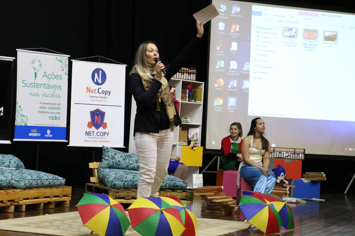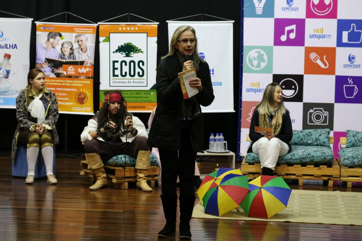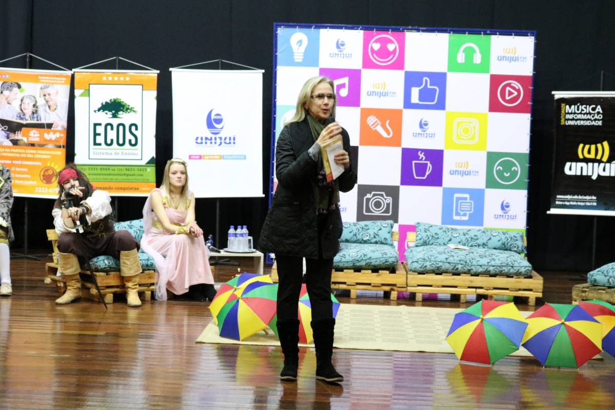 A reitora da UNIJUÍ, professora Cátia Nehring, destacou o evento de premiação como uma atividade importante de integração entre Universidade e escola de Educação Básica. “Todo esse projeto e o desafio para as professoras que estão na Educação Básica se dá no sentido da magia, do conto, da leitura e da escrita culminar em uma produção. E esta atividade de hoje marca o encerramento de um projeto que foi desenvolvido durante todo o primeiro semestre a partir da iniciativa da UNIJUÍ FM, do curso de Letras a partir da correção dos contos e dos apoiadores, que qualificam esse projeto”, avalia a reitora.