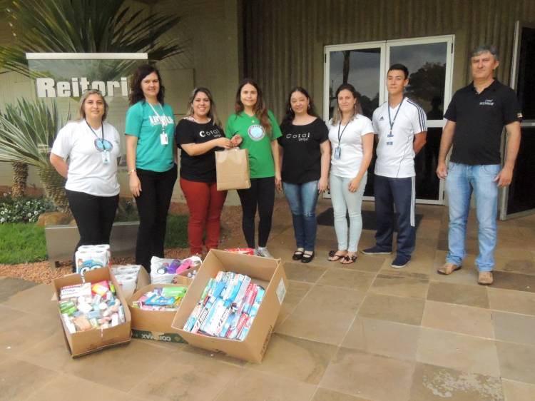 No fim da tarde desta sexta-feira, a Unijuí, através do Coral, Cia. Cadagy e Assessoria de Cultura da Vice-Reitoria de Pós-Graduação, Pesquisa e Extensão realizou a entrega de diversos matérias de higiene pessoal para a Associação de Apoio a Pessoas com Câncer – AAPECAN. Os materiais foram arrecadados como forma de ingresso na Tertúlia Universitária, realizada no último dia 10 de setembro.