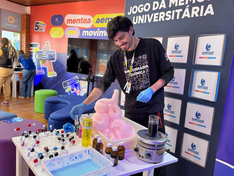Durante o primeiro dia, a equipe da Unijuí recebeu a comunidade com atividades interativas, brincadeiras, informações sobre cursos e processos seletivos, além de ações criativas, como a produção de chaveiros personalizados.