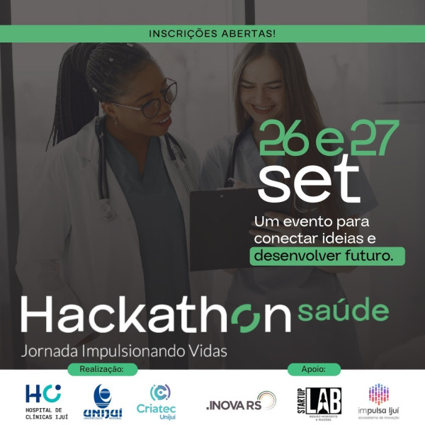 A Unijuí, em parceria com o Hospital de Clínicas de Ijuí (HCI), realizará o Hackathon da Saúde - Jornada Impulsionando Vidas, com foco na inovação em saúde. O evento acontecerá nos dias 26 (das 18h30 às 22h) e 27 de setembro (das 8h às 12h e das 13h às 18h), no Centro de Eventos da Unijuí – 1º andar, campus de Ijuí, reunindo cerca de 50 participantes, entre estudantes de graduação e pós-graduação, empresas incubadas no programa de inovação da universidade e colaboradores do HCI.