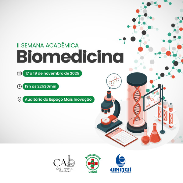 A II Semana Acadêmica de Biomedicina da Unijuí chega com o propósito de reunir acadêmicos, profissionais e a comunidade em um espaço de aprendizado, troca de ideias e valorização da área biomédica,