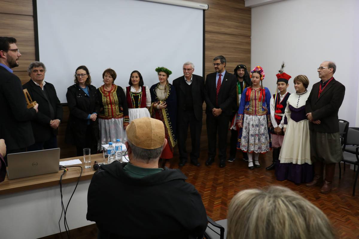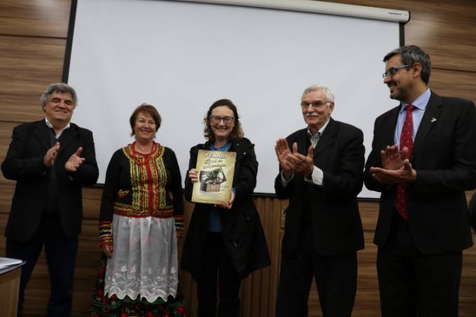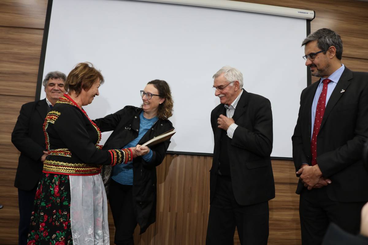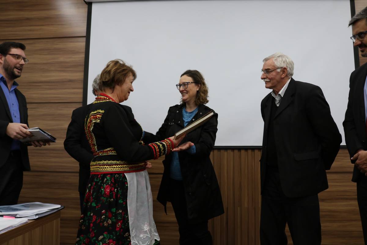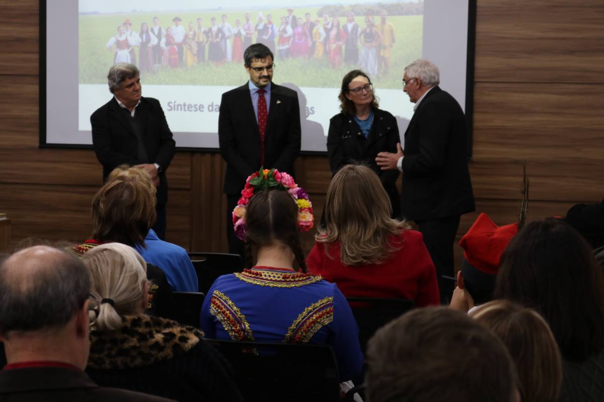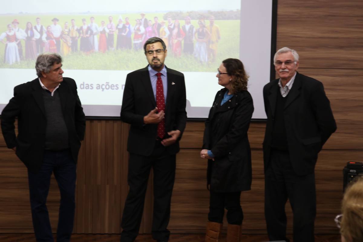 A entrega foi realizada pelo Vice-Reitor de Pós-Graduação, Pesquisa e Extensão da Unijuí, Fernando Jaime González, na oportunidade Reitor em exercício, pelo Vice-Prefeito, Valdir Zardin e pelo presidente da União das Etnias de Ijuí (UETI), Nelson Casarin. A apresentação foi realizada por Francisco Roloff, produtor cultural da UETI. “Como instituição comunitária a Unijuí apoia e acredita nesta iniciativa, colaborando para concretizar este movimento da comunidade”, observou o professor Fernando Jaime González.