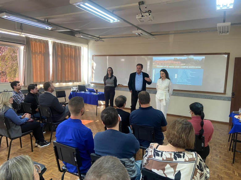 Com a intenção de atender à demanda da comunidade regional e ampliar o leque de opções, a Unijuí irá ofertar novos cursos para o Vestibular de Verão 2025, com destaque para o campus Santa Rosa. Em apresentação realizada nesta sexta-feira, 06 de setembro, a representantes da comunidade, empresas, entidades representativas e do Executivo do município, a reitoria da Universidade, representada pelo reitor, professor Dieter Rugard Siedenberg, a vice-reitora de Graduação, professora Bruna Comparsi, e a coordenadora do campus Santa Rosa, professora Taciana Paula Enderle, confirmou as novidades.