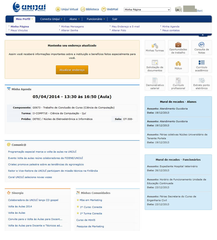Baseado em seu vínculo com a Unijuí, você agora têm acesso a atalhos importantes para diversas regiões do portal da Unijuí.