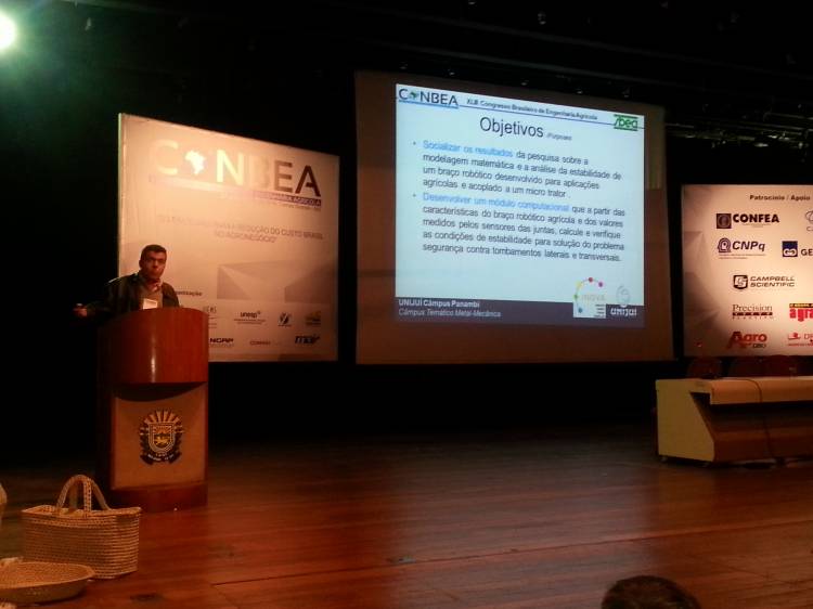 O professor do Curso de Engenharia Mecânica da UNIJUÍ - Câmpus Panambi, Dr. Antonio Carlos Valdiero, participa do XLIII Congresso Brasileiro de Engenharia Agrícola (CONBEA), que ocorre no período de 27 a 31 de julho de 2014, em Campo Grande, Mato Grosso do Sul.