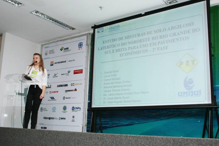 Além da publicação nos anais do congresso, as acadêmicas Carine Norback e Emmanuelle Holdefer Garcia apresentaram artigos. Com o título “Estudo de Misturas de Solo Argiloso Laterítico do Noroeste do Rio Grande do Sul e Brita para Uso em Pavimentos Econômicos – 2ª Fase”, Carine apresentou artigo do grupo de pesquisa orientado pelo professor Mestre Carlos Alberto Simões Pires Wayhs. Já Emmanuelle apresentou o artigo “Análise do Desempenho de Misturas Asfálticas com a Incorporação de Material Fresado e Cal”, orientado pelo professor Mestre José Antonio Santana Echeverria.