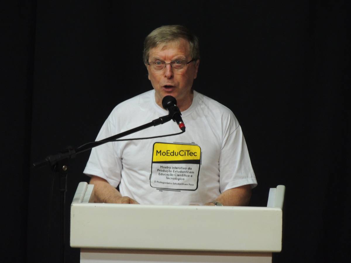 Na abertura do evento, o professor doutor Décio Auler, da Universidade Federal de Santa Maria, palestrou sobre ‘Relações entre Educação, Ciência, Tecnologia, Trabalho e Cultura na Sociedade e Ambiente’.