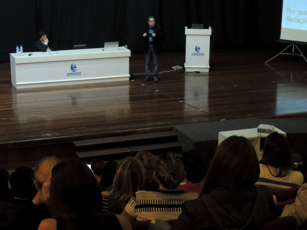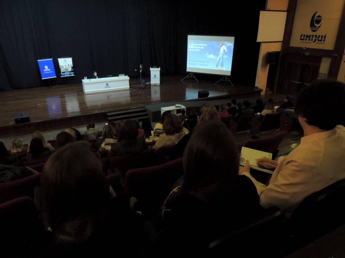 “Por que erramos na Redação Científica?”, o questionamento deu nome e norteou a fala do palestrante. Realizada no Salão de Atos Argemiro Jacob Brum, no Campus Ijuí. Com a participação de estudantes e professores da Universidade, a palestra foi promovida pela Vice-Reitoria de Pós-Graduação, Pesquisa e Extensão e pela Unidade de Educação Continuada da Unijuí.
