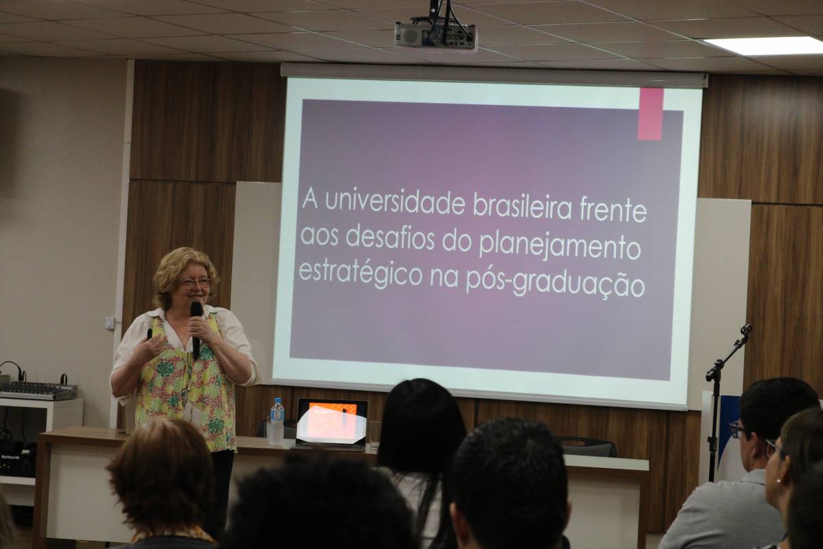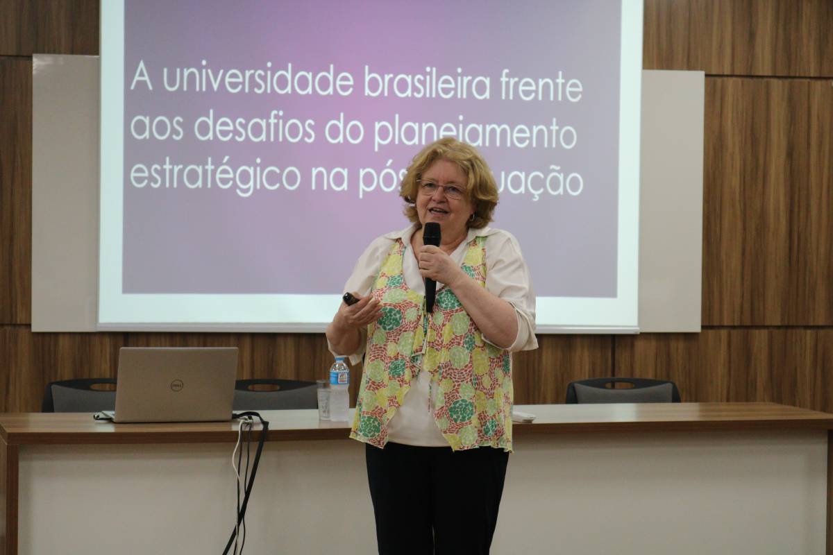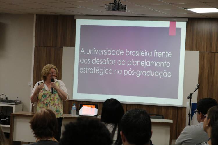 A convidada conversou com professores e secretários dos Programas, além de integrantes da Vice-Reitoria de Pós-Graduação, Pesquisa e Extensão, do Planejamento e do Escritório de Relações Internacionais da Universidade, desenvolvendo o tema “A universidade brasileira frente aos desafios do planejamento estratégico na pós-graduação”.