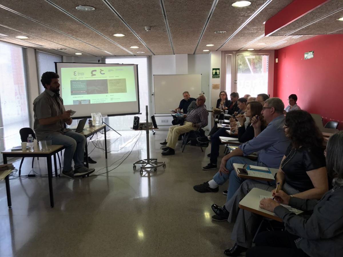De Insbruck o grupo se dirigiu à Espanha, onde foi recebido no IGOP, o Instituto de Governo e Políticas Públicas, da Universidade Autônoma de Barcelona, quando se fez acompanhar do Prof. Tenório, professor da FGV e colaborador do PPGDR/UNIJUI. A diretora do Instituto Raquel Gallego explicou que a UAB é uma universidade que neste ano completa 50 anos e se organiza em forma de Departamentos, Institutos e Faculdades. Os Departamentos são a estrutura mais antiga e as Faculdades são responsáveis pela docência. Os Institutos têm como principal função a investigação, ou seja, a pesquisa, e reúnem pesquisadores de diferentes áreas com um foco. Buscam sempre inserção na comunidade e financiamentos de agências de fomento para sustentação. O IGOP se desenhou como um Instituto que busca interagir com os territórios, faz pesquisas aplicadas, e se preocupa com movimentos sociais, redes de economia solidária e políticas públicas.