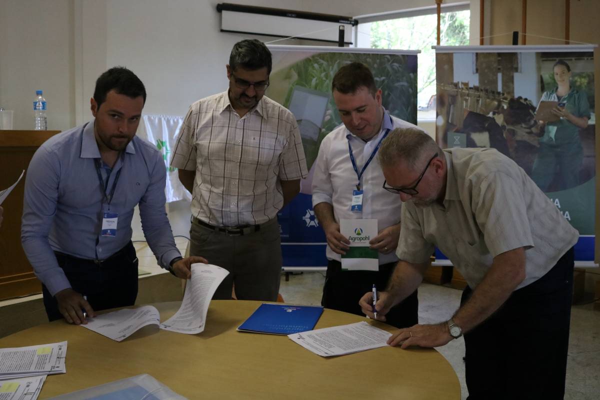 O Departamento de Estudos Agrários (DEAg) da Unijuí assinou, nesta terça-feira, 24, convênio com a empresa Biomaster Homeopatia Animal, distribuidora dos produtos Biomax e Biomaster selecionada em edital, para pesquisa com Bovinos de Leite. Em parceria com a Universidade, serão iniciados, após liberação do Comitê de Ética de Uso de Animais, os trabalhos de campo. O objetivo é avaliar a utilização de homeopatia no controle da mastite de vacas.