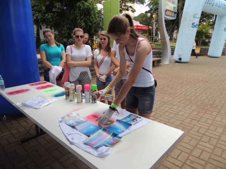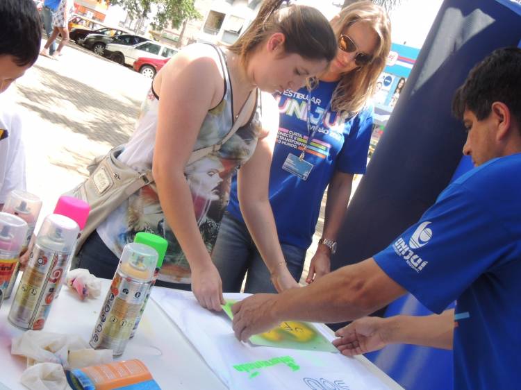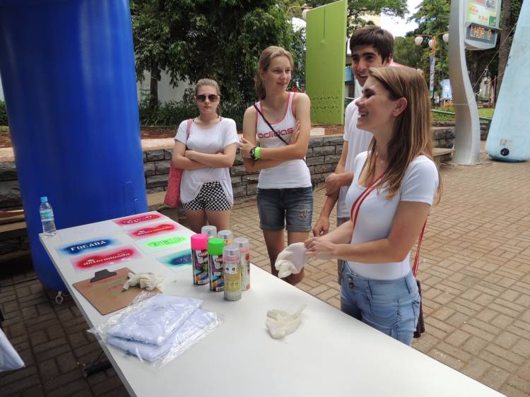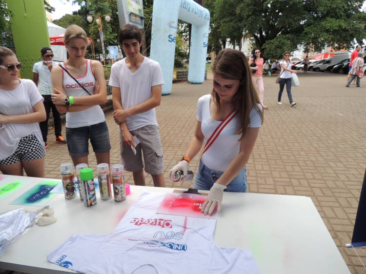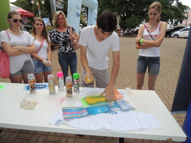 Os que já se inscreveram para o Vestibular Verão 2014 UNIJUÍ puderam participar de uma atividade diferenciada durante esta sexta-feira, 8: a customização de camisetas na Praça da República.
