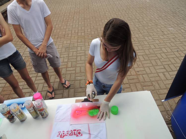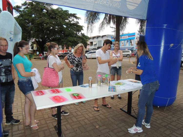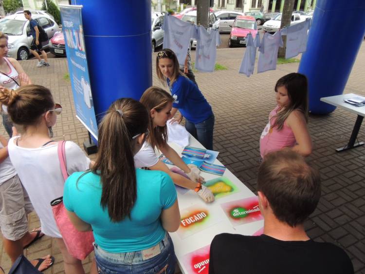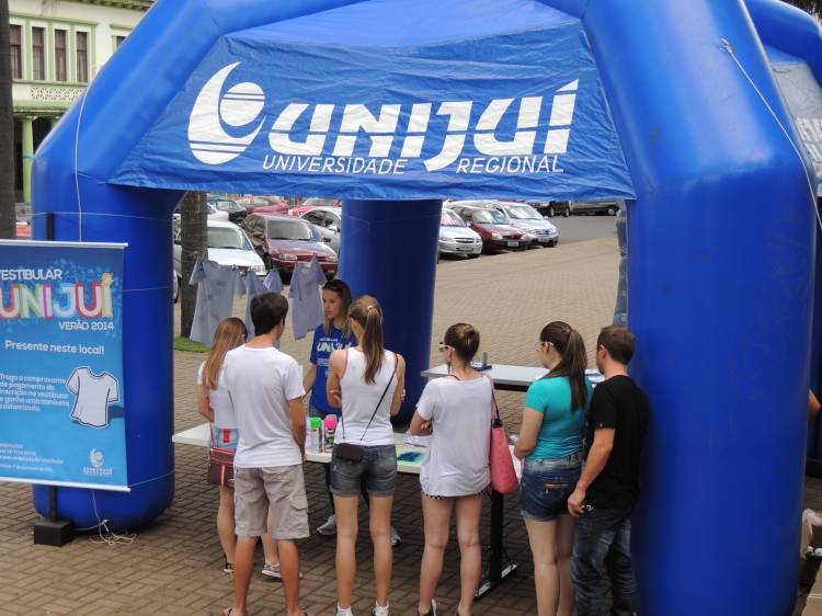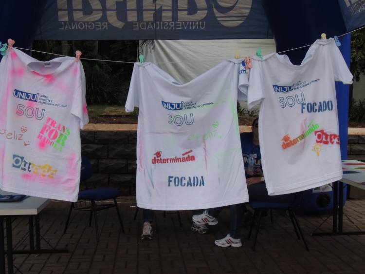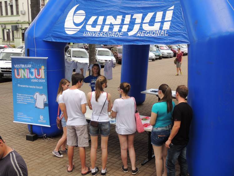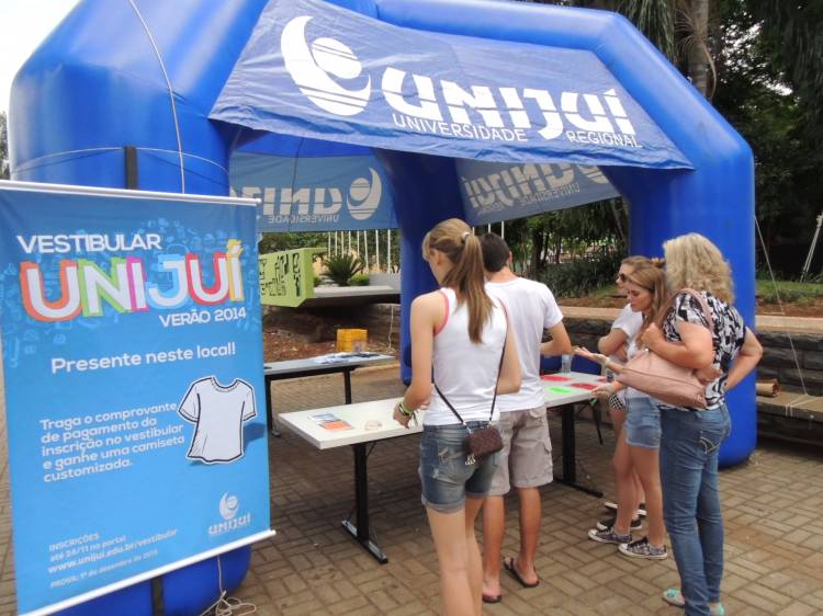 Todos os que compareceram na praça com o comprovante de pagamento puderam customizar a sua camiseta. A UNIJUÍ esteve presente na Praça com uma tenda inflável, disponibilizando sprays e moldes com palavras para que cada candidato ao vestibular pudesse personalizar sua camiseta. A ação teve como objetivo intensificar a divulgação do Vestibular Verão 2014.