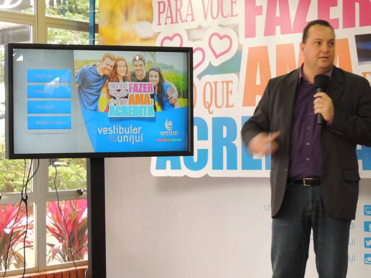 O gerente da Coordenadoria de Marketing da Unijuí, Giancarlo Dari Bottega, fez a apresentação do conceito da campanha e também das peças gráficas, linha de comunicação digital e o VT, que já está rodando nas Redes Sociais da Unijuí, gravado com a participação de estudantes, funcionários, egressos e até pais de estudantes da Universidade.