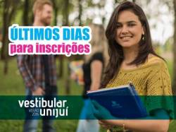 As inscrições para o Vestibular Verão 2016 da UNIJUÍ encerram neste domingo, 29 de novembro. A inscrição pode ser realizada no Portal da Universidade, no valor de R$ 60,00. Para os candidatos que se inscreveram no Profissional do Futuro, o valor da inscrição é de R$ 42,00. A inscrição pode ser paga até segunda-feira, 30 de novembro, nas Tesourarias da Unijuí e na rede bancária.