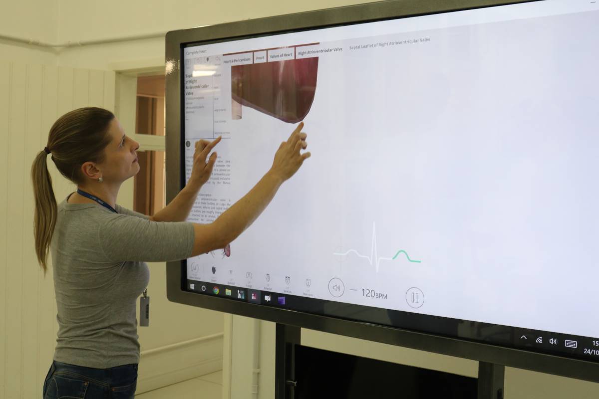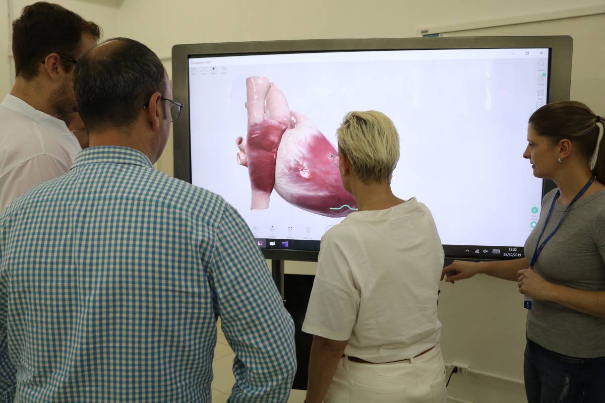 São 65 polegadas de tela touch que permite mapear, por exemplo, 360 graus de um órgão como o pulmão. De acordo com o professor Marcio Strassburger, chefe do Departamento de Ciências da Vida, o equipamento exibe imagens anatômicas tridimensionais com alto grau de detalhamento e fidedignidade à estrutura real. Com o equipamento é possível realizar movimentos fisiológicos e movimentar cada parte do corpo isoladamente, além da possibilidade de dissecação virtual.