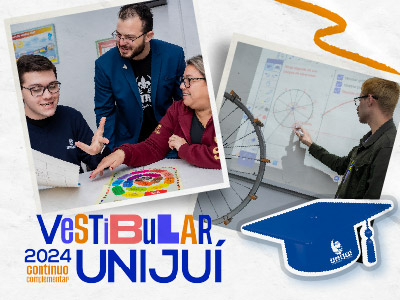 Encerram-se nesta sexta-feira, 24 de maio, as inscrições para o Módulo 2 do Vestibular EaD da Unijuí. O Vestibular é feito de forma on-line e compreende uma redação dissertativa-argumentativa que deve ser desenvolvida em ambiente on-line específico, cujo tema é divulgado no momento em que a prova é realizada. Os interessados inscritos, se aprovados, garantem desconto de 50% em suas quatro primeiras mensalidades.