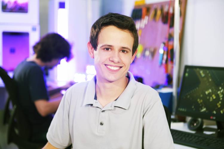 João Fernando Weber é um jovem empresário de apenas 26 anos, estudante de Engenharia Elétrica da Unijuí, e protagonista da Campanha de Vestibular de Verão 2019. Um sonhador que encontrou na Unijuí a oportunidade de expandir seus negócios, por meio da Incubadora de Empresas de Inovação Tecnológica (Criatec).